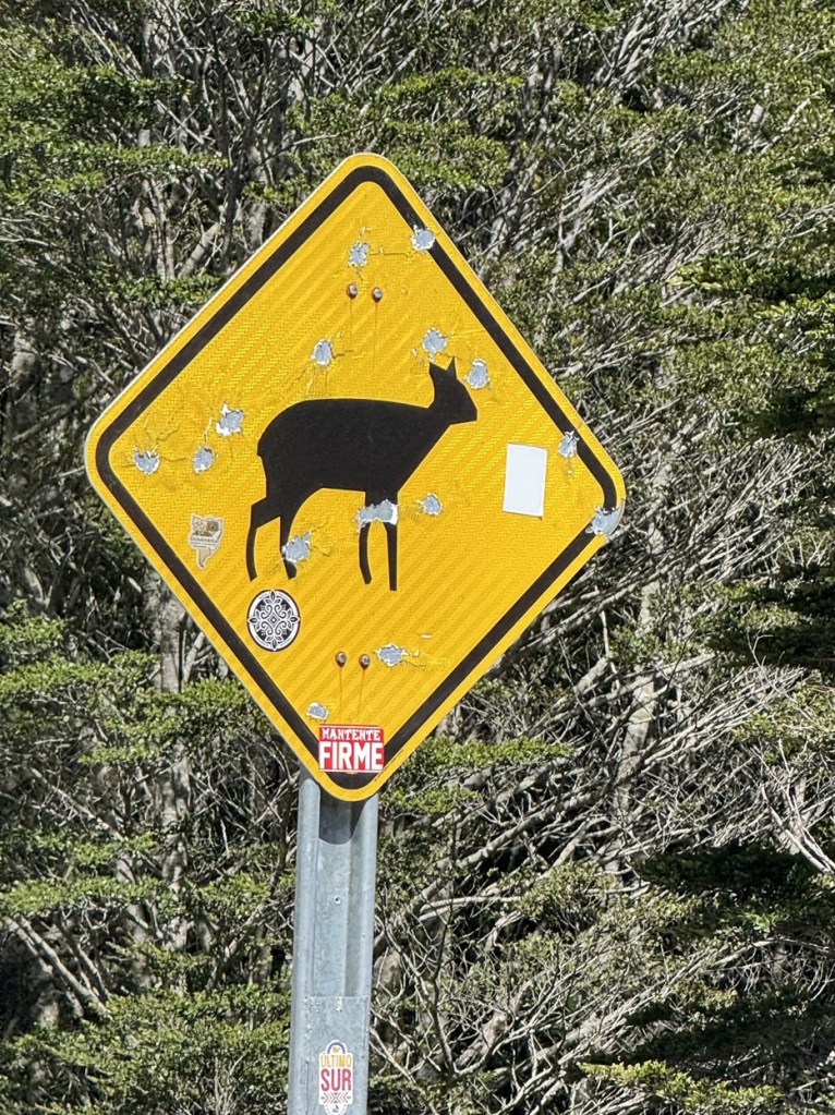 And sometimes there are just symbols on road signs and that works too. This one says “watch out for the huemul.”😂