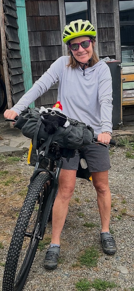 You may notice something new in the cockpit of my bike. Meet Conrad the crocheted condor who’ll be riding along with us on the CA. I’m hoping Chile’s national bird will invite friendly convos so we can practice our Spanish.