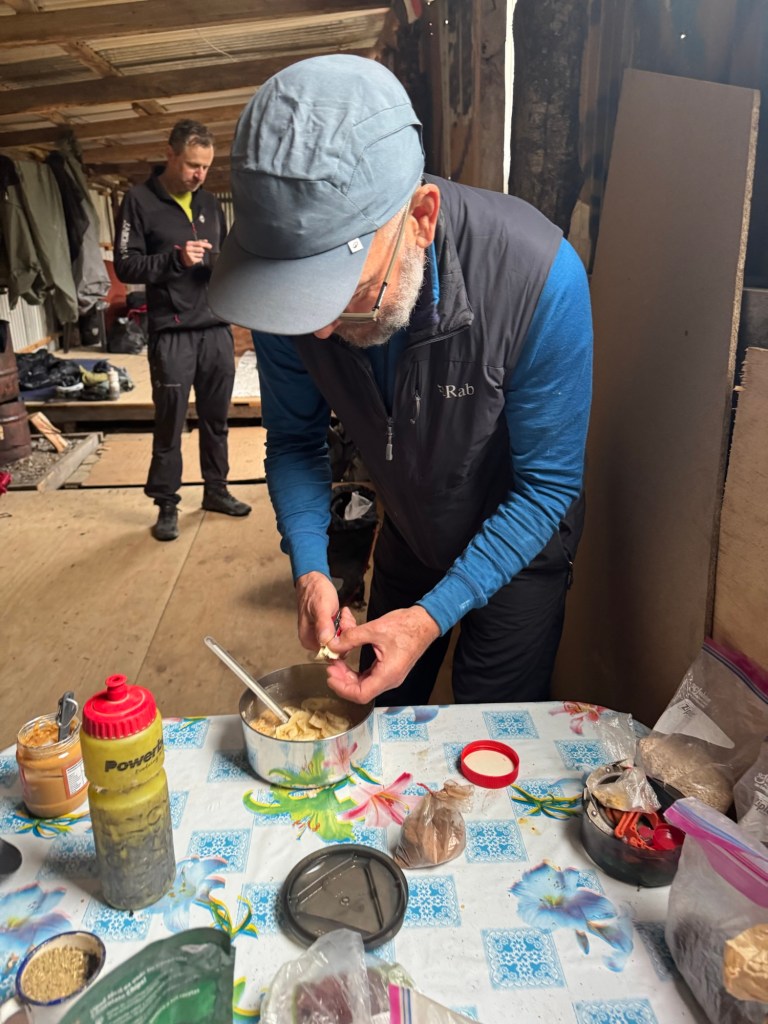 Wayne (from the UK) who I like to call Mr. Ambassador of the Carretera Austral (this is his third time riding it) knows his way around the camp kitchen. He pulls fresh produce and kitchen gadgets out of his packs like a pro to prepare his meals.