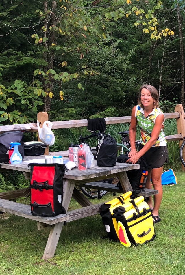 We conquered the Middlebury Gap and had a great chat with Long Trail hikers at the top. The next several miles were 12% grade downhill, which can be a little bit scary on curvy roads. We knew we had another climb later in the day, but for the next 30 miles or so we enjoyed the slight downhill and Vermont countryside riding through small villages along the way. We grabbed a nice picnic lunch in a gazebo along the road with leftover pizza from couple of nights ago and Vermont cheese/peanut butter and crackers. 10 miles to go with another climb and we were ready to go to our destination of “Rest and Nest” campground.