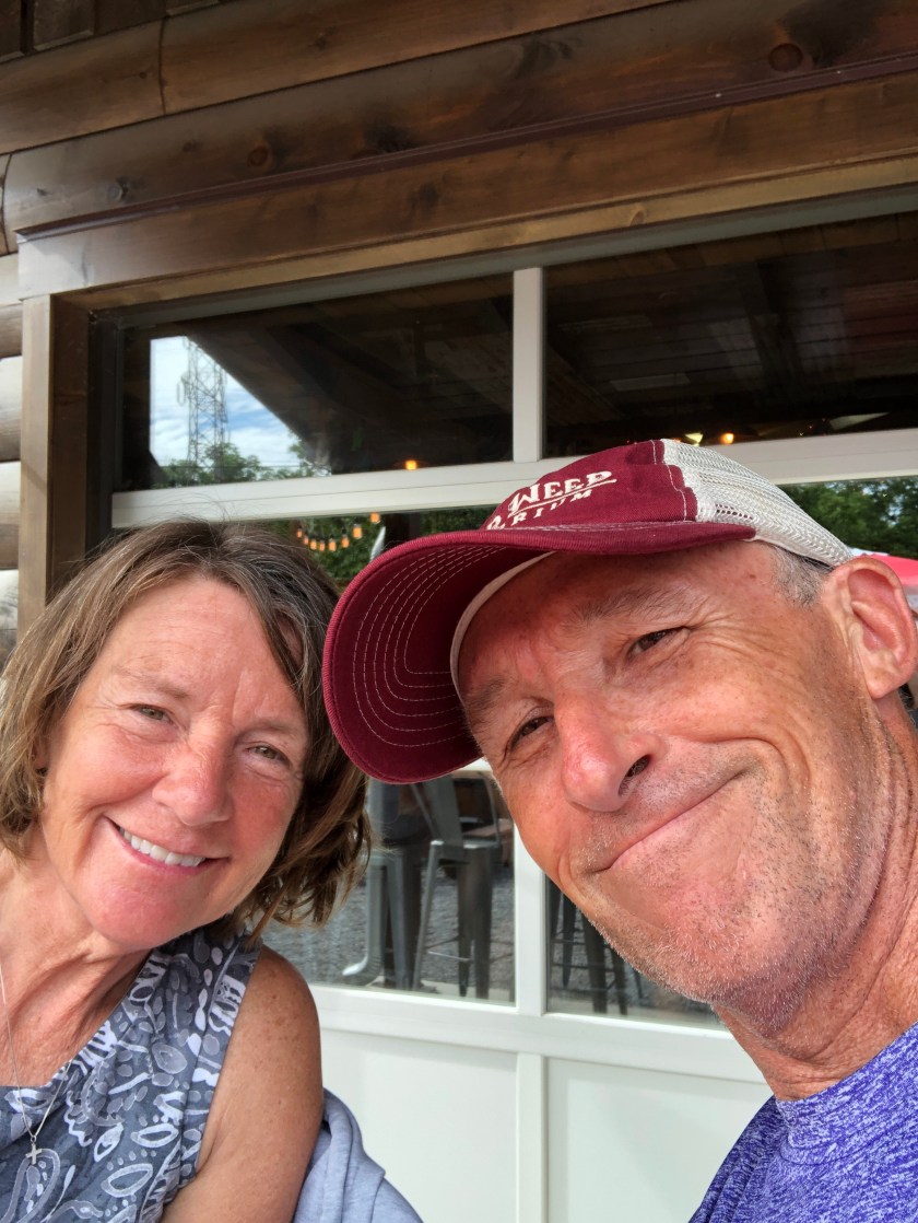 The sun was out, and soon the mountain bike trail dumped out onto nice gravel when somehow my tire picked up a metal chard and my front tire went flat. Everyone who passed offered help but Tom fixed it quickly and we were back on the road.