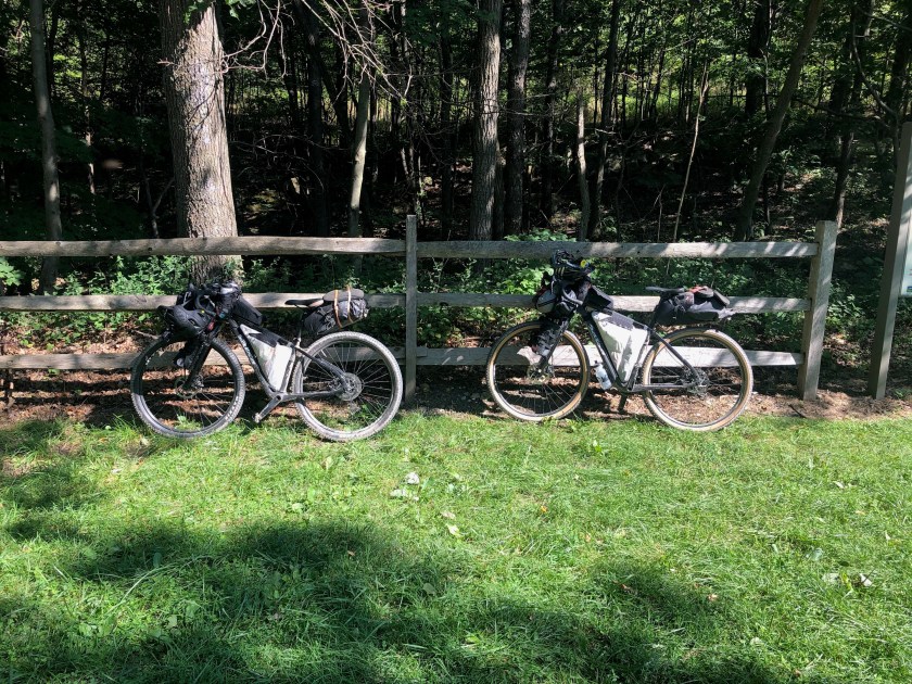 It’s all rainbows and unicorns until you get to the access trail to Ohiopyle State Park. Ever done it? You don’t wanna. It’s steep, rocky and not what you want to tackle when you’re approaching the 80 mile mark and you’re tired, hungry and thirsty. Not only did we get ‘er done, we set up our tent and then walked back down the ratchet trail into town for an outdoor dinner and bevvie. Of course that meant we had to walk back up it again. In the dark. But at least this time we weren’t pushing loaded bikes.