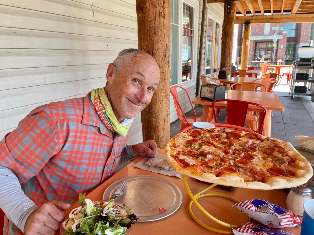 The riding was easy and short today. We stopped back in Whitefish for a pizza for lunch. It might be the first time I’ve eaten more than Tom. He does have one more piece stashed for tomorrow. Hummm I’m sure he’ll pull it out before noon. He’s known for stashing leftovers.