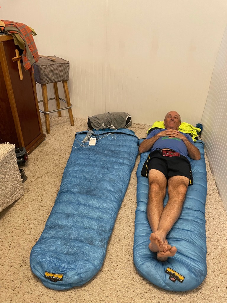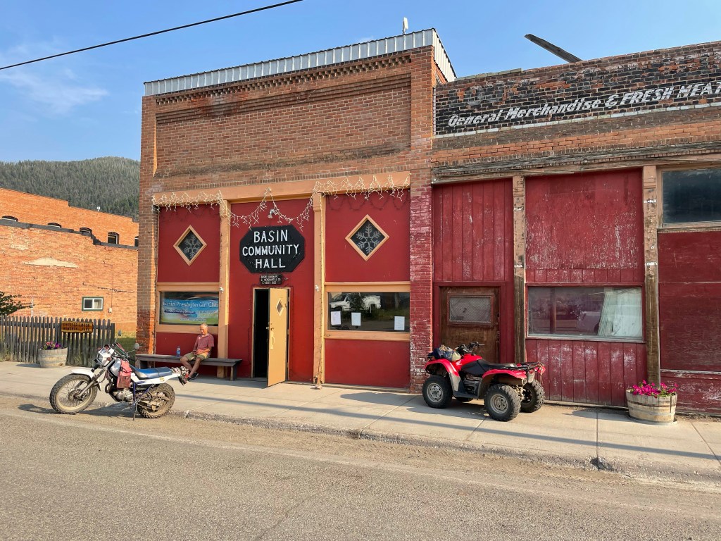 Sleeping in the Basin Community Center tonight on the carpeted stage. It’s been here since 1908 and costs cyclists just $5 a piece to sleep here. There’s electricity, cell service, water and a bathroom. What we else would ya need? 🤷🏼♀️