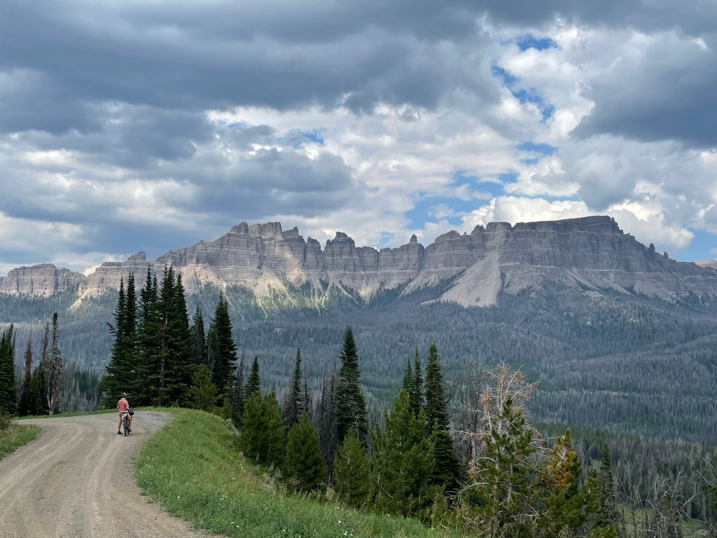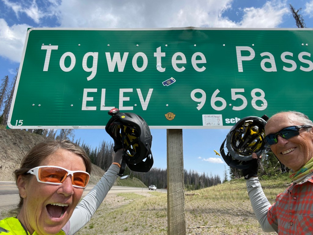 We stopped in a C-store in Togwotee and then went on to pedal six more miles to the top of the Pass on pavement. The views both up and down the Pass were spectacular.