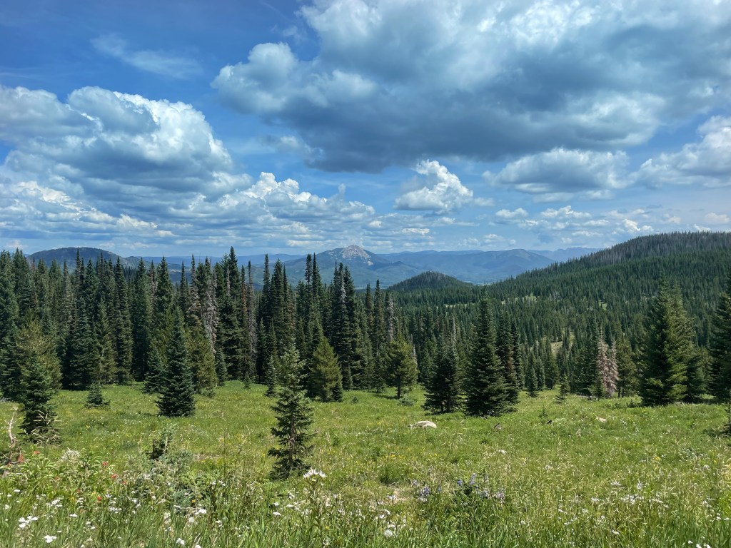 We said goodbye to Kirsten at Brush Mountain Lodge and started our day with a solid uphill and then a lovely ride through hugh meadows with stunning views of Colorado peaks.