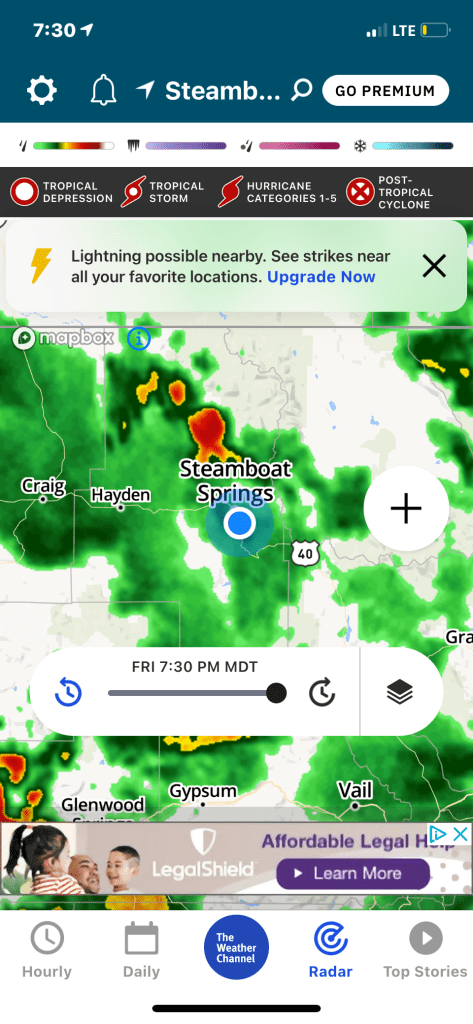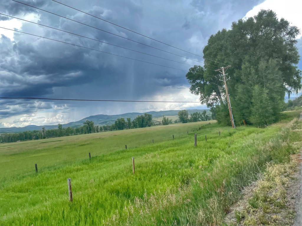 Steamboat is apparently a fave destination right now and shelter for bikepackers, whether it be camping, hotel or someone’s backyard was difficult to find. We could see a storm was coming and with our daughter’s help, we scooped up a hotel room for the night. Not mad about it. Another night of clean sheets and tasty food. Thanks, Anne! Not getting too used to this fine living though. It’s back to the tent the next few nights.😊