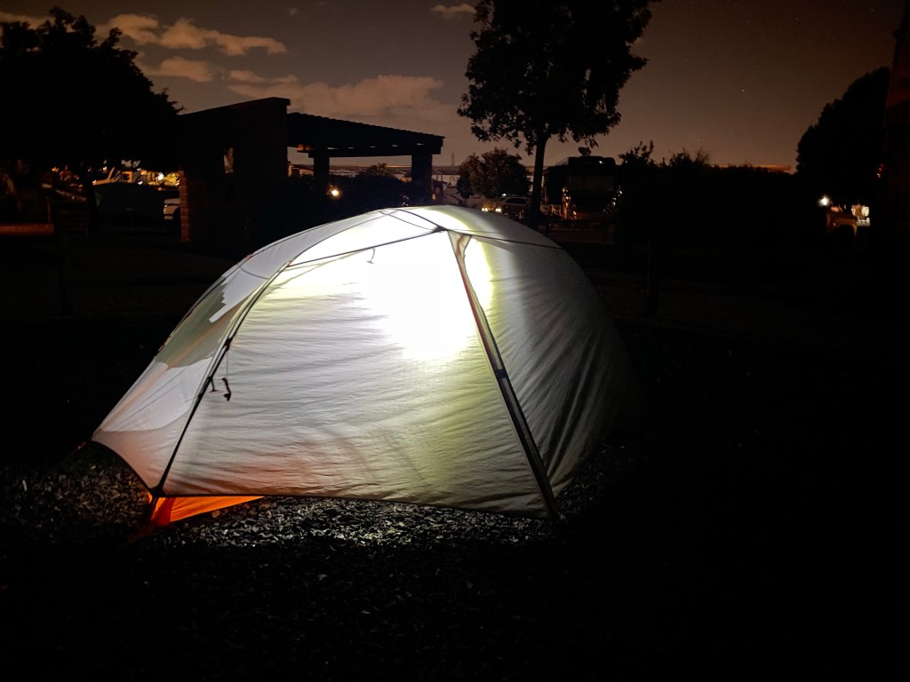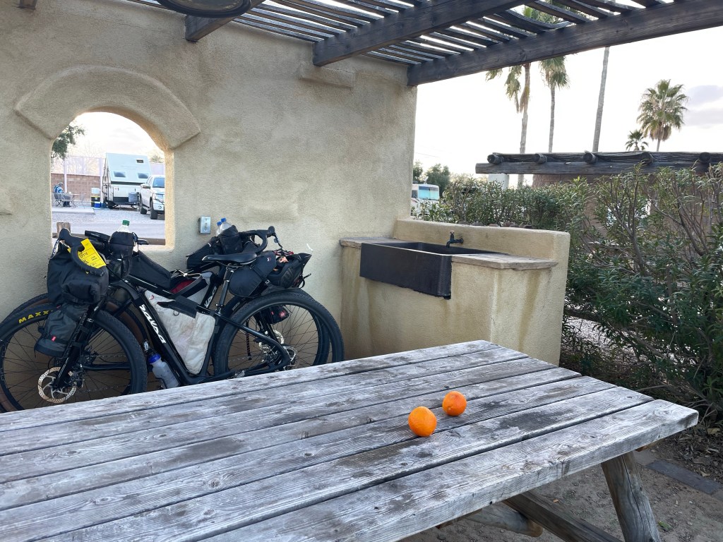 But the real schooling came when we arrived to our campsite. Dang we’ve never seen anything like this KOA. Grapefruit, orange and lemon trees everywhere. Pick what you want and eat. They have a hot tub, pool, pickleball courts. There is a sink, small pavilion (with an electric light), picnic table, soft tent pad and fire pit at every tent site. It’s mostly for RVs but there a few tenters. Check out the vid for pics. Our needs are significantly less than this but it was so much fun to experience. And their service and hospitality were 💯