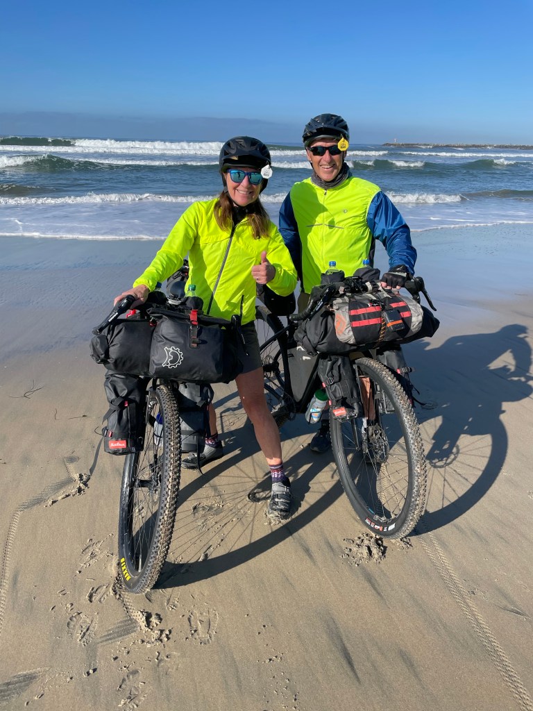 We are on our way and what a day it was! After riding four miles to the official start line we tapped our tires in the Pacific Ocean, ready to ride east.