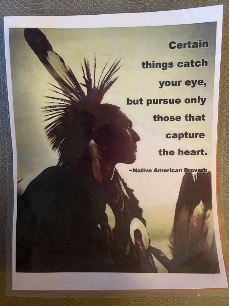 We are camping on the beautiful lands owned by the Sovereign Nation of the Viejas Band of Kumeyaay Indians. This proverb spoke to us.