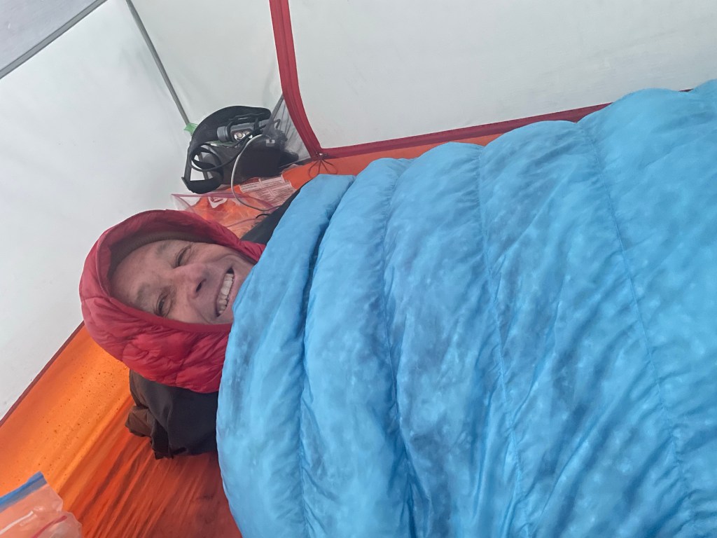 We woke up very cold despite sleeping in our puffy coats and other cold weather clothing but the rain the night before made everything wet and damp (and colder).🥶