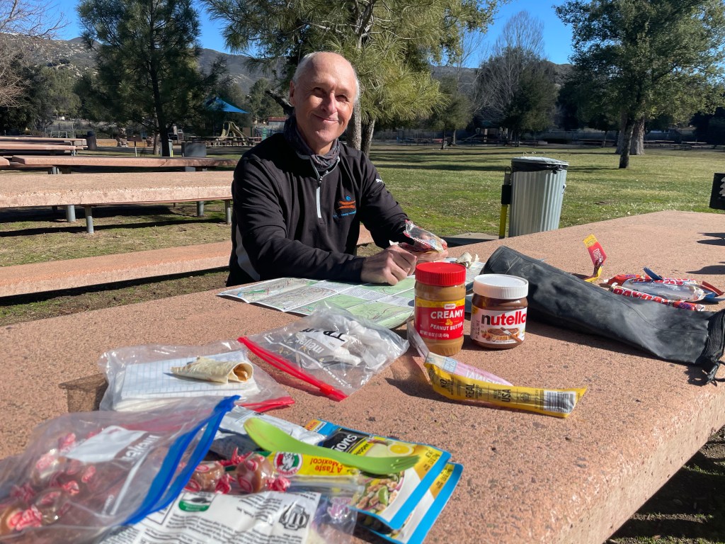 More of the same today with regard to sun, bluebird skies and climb but dang it’s like we’re in Bicycle Bootcamp with the headwind. It was cold and relentless most of the day – so much so, we didn’t make it to our planned stop.