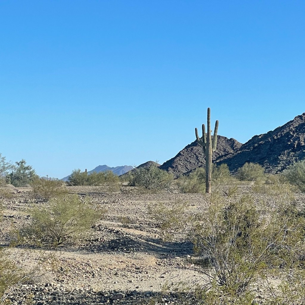 And oh… there are saguaro cacti now and the skies continue to be clear and blue.