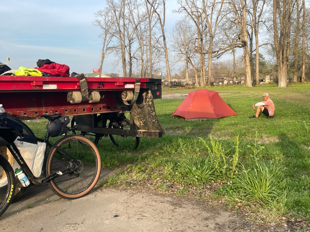Finally, we scored another truck stop tent site. We mighta threw our tent up right next to a semi who kept his engine running all night but we pretended it was an soothing air conditioner and slept like babies.