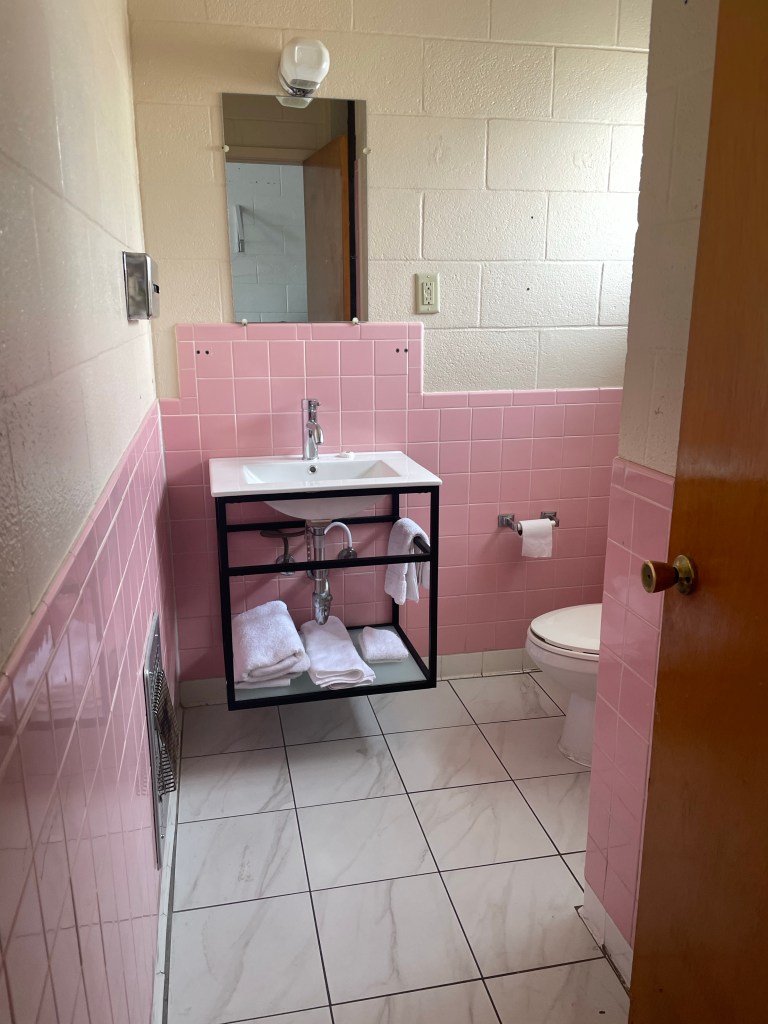 Sanderson, TX offers camping in the area and it was above 40 degrees however we checked into the Desert Air Motel to watch the game on TV, and have other amenities within reach – like a flusher. 🚽