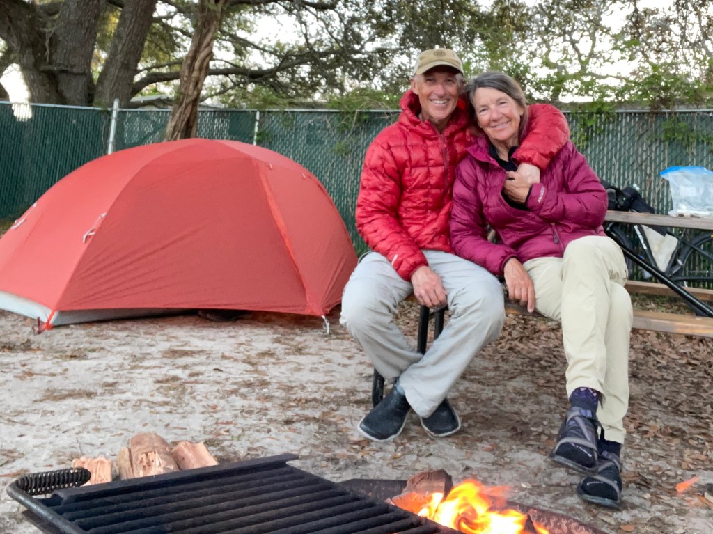 After dinner, a campfire (our first of the trip) was the perfect way to end the day. We said goodbye to Gary, a cyclist we met back in Suwannee River State Park who finished his New Orleans to St. Augustine trip today and will head north tomorrow to Jacksonville and beyond.