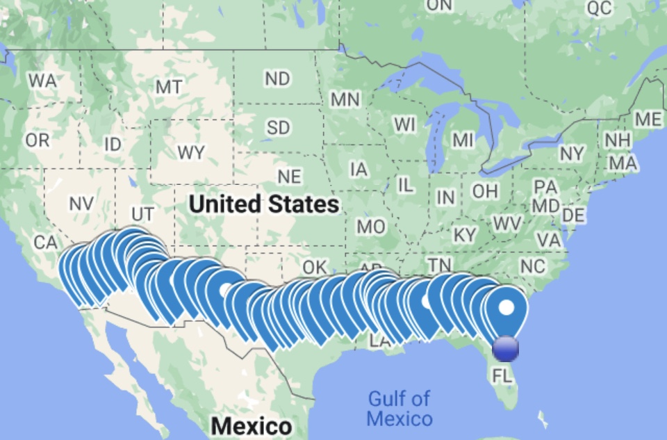 We have finished our San Diego to Key West bike ride of over 3,600 miles and are celebrating with family. Look for our final recap post in a few days. For now, just one more video of our last day. Oh what a ride it’s been!