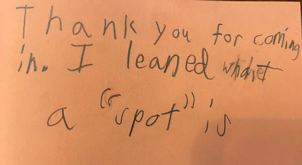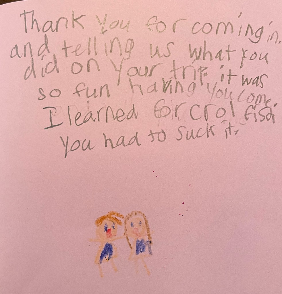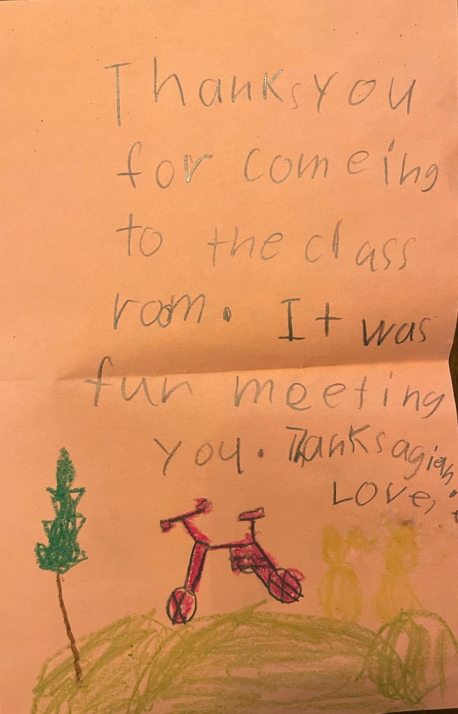 And if the time spent with these eight-year-olds wasn’t enough, we received a packet of of handwritten, illustrated thank you cards that brought big smiles to our faces. Below are just a few.