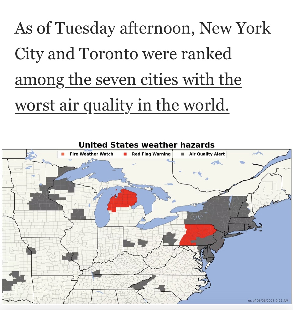 When we were walking into town we kept noticing the haze. Surely this wasn’t pollution from NYC. It reminded Tom of when we cycled through the forest fires out in Montana when riding the Great Divide. It’s a peculiar blanket over the sun. Sure enough our friend Dan enlightened us… forest fires in Canada are throwing smoke our way.