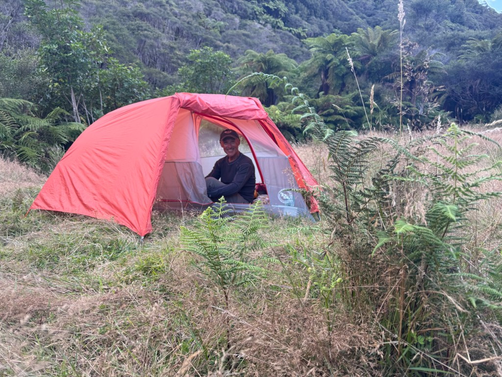 Tom’s ribs on his right side are still pretty sore from his fall on the Mangapurua decent. Not sure how he’s lugging that wet tent up and down the hills everyday but he’s rockin’ it.
