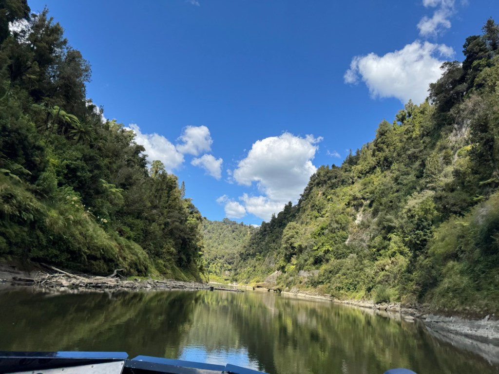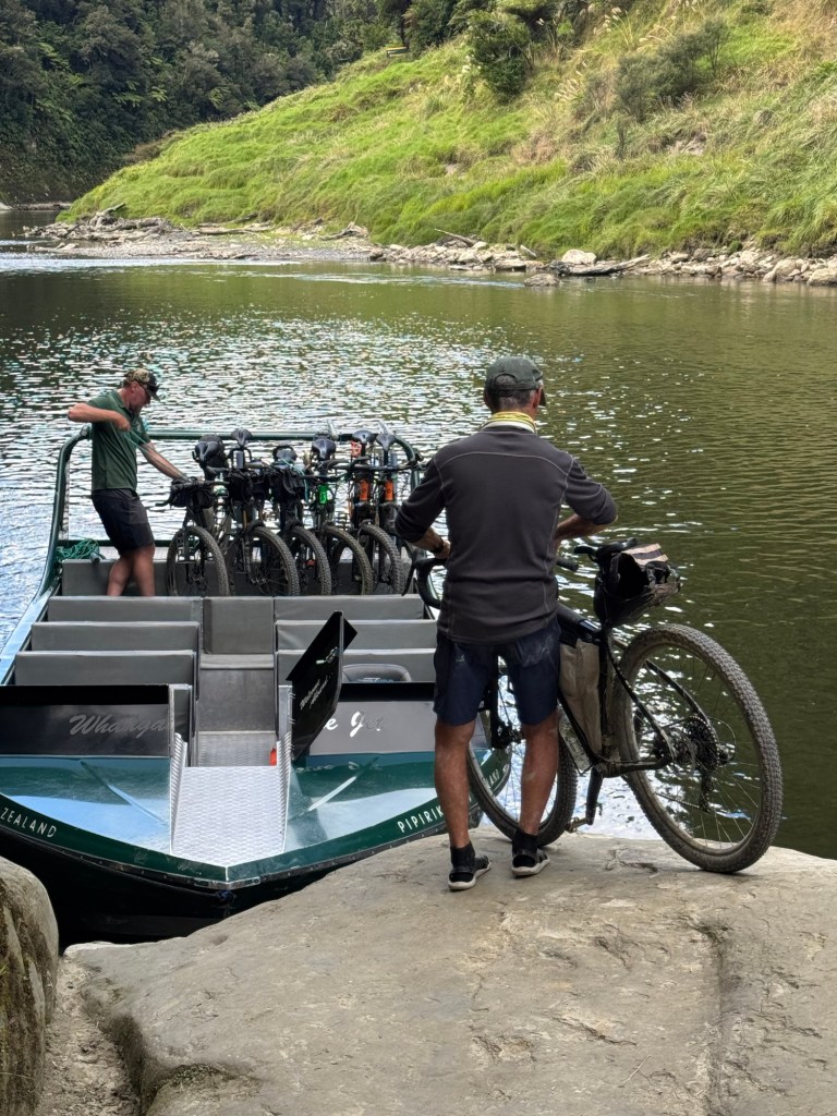 He gunned the throttle so hard the bow of the boat went straight up in the air and I was sure the bikes on the back of the boat were at the bottom of the Whanganui River.