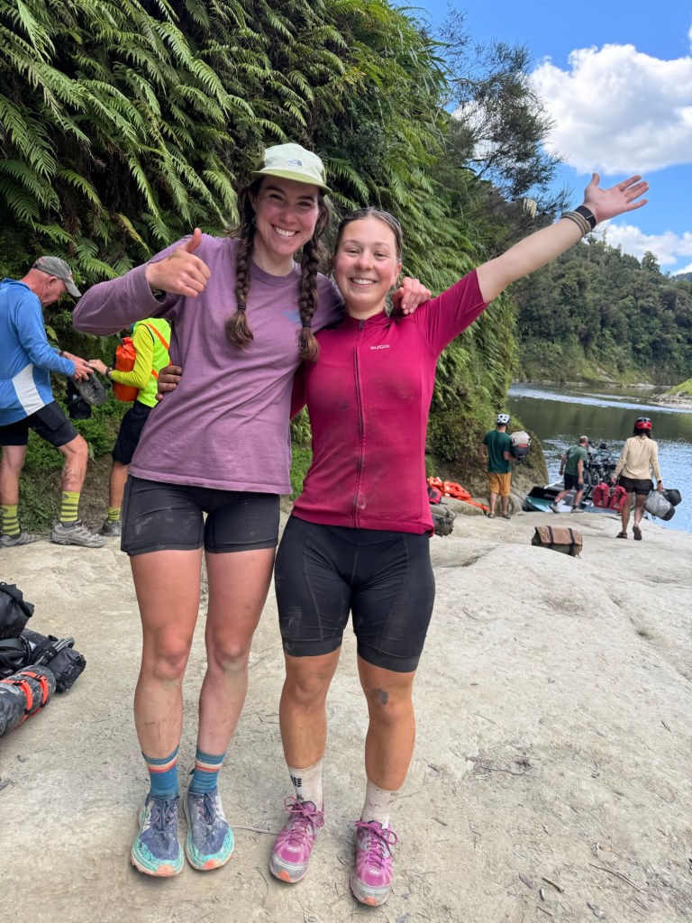 However, we’d been in contact with our friends Sarah and Amelia and knew they were trying to make the same boat we were but they started way back in Whakahoro (near the Blue Duck where we ate lunch yesterday) and had the entire climb to make before 3:30pm. There were six very narrow bridges they had to take their panniers off their bikes in order to pass, the mud, the dismount areas. Plus who doesn’t want to stop to take pics? But with 20 minutes to spare, these two rolled in to cheers at the Landing.