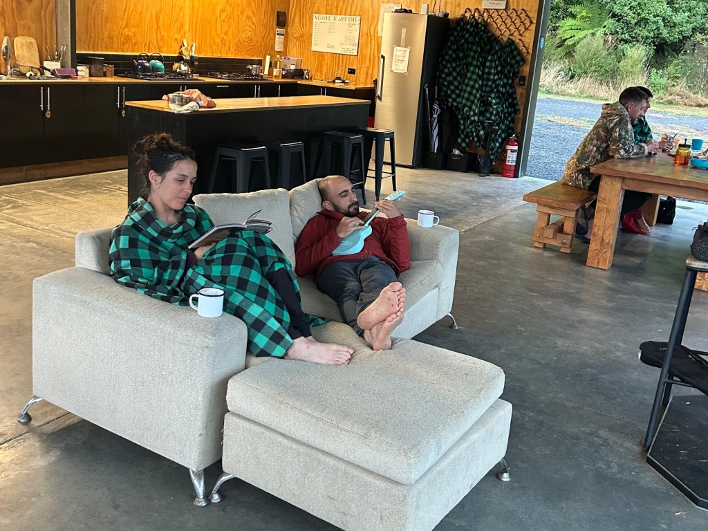 But first… we had coffee at the Maraetai Lodge where we splurged for another night between cotton sheets and fluffy pillows at a bike hostel.