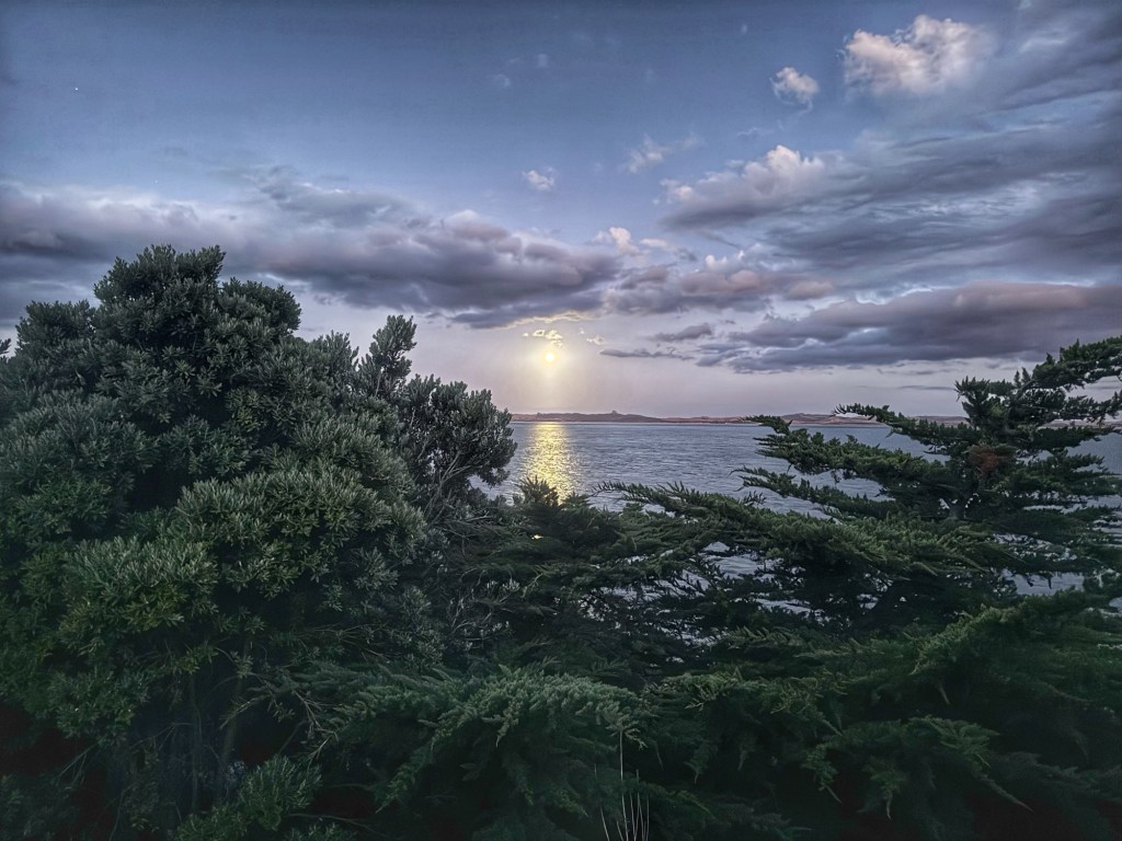 Just before the moon began to rise, local Sue quietly approached us and wondered if we would like to see the view from next door at her little bach (a kiwi vacation home).