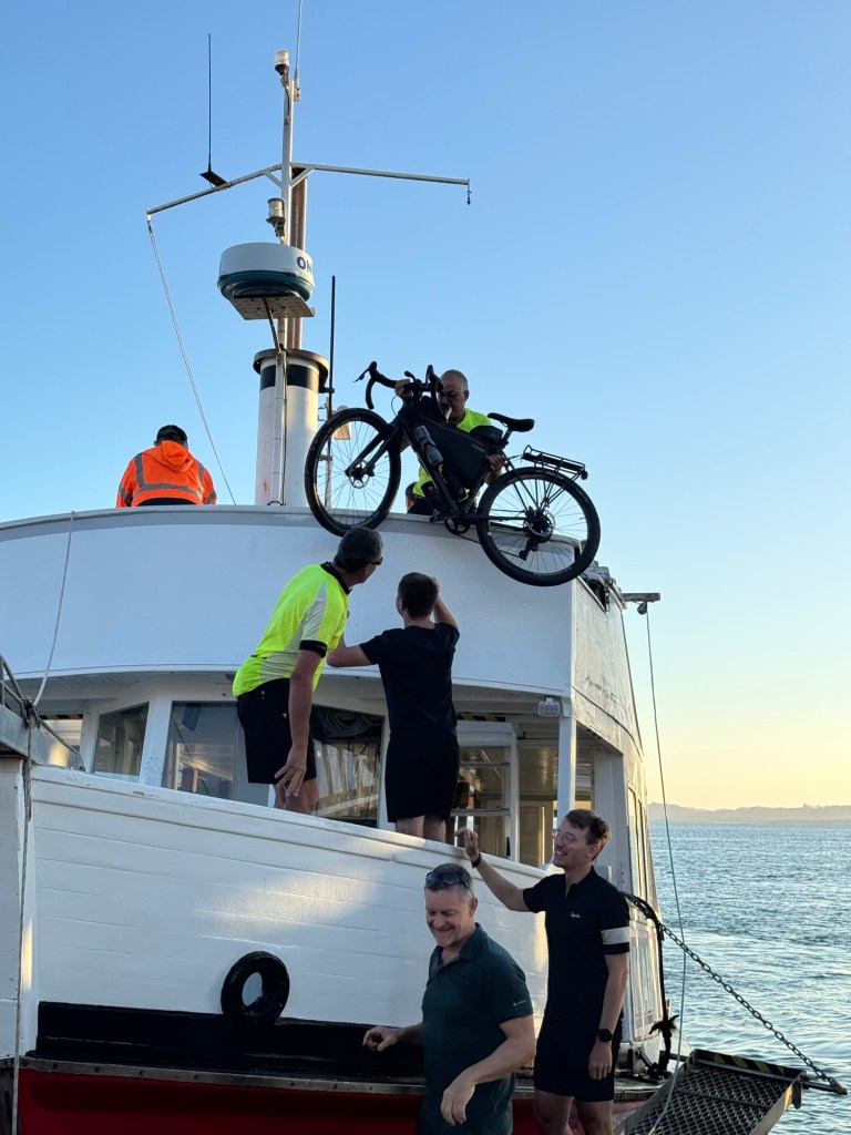 This was not the ferryman’s first rodeo shuttling cyclists. He had a plan for each man and it worked. Bikes boarded first, then bodies and bags.