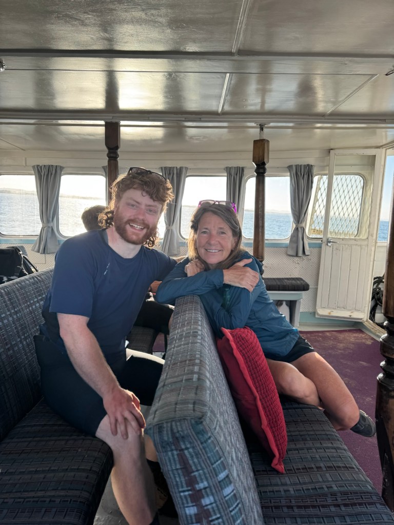 Kinda nice to be sitting on a boat bench rather than a bike saddle.