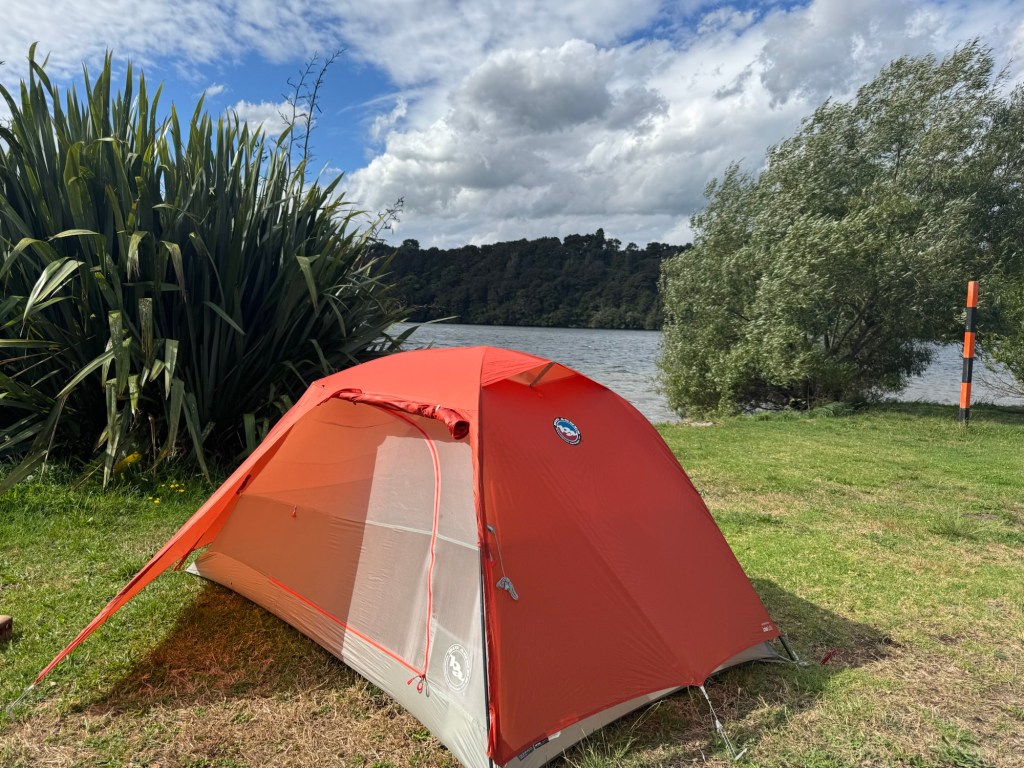 We found a campsite at Arohena Landing on Lake Arapuni and took a quick dip after the tent was set up.