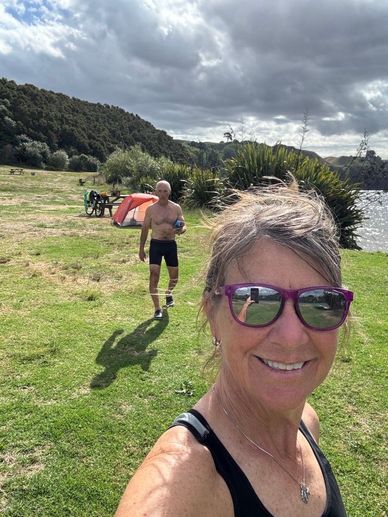 Lo and behold, Perrine got her cable fixed and camped two tents down from us on our first night on the Bay. Zoe of course was already in Huketere, 💪🏻