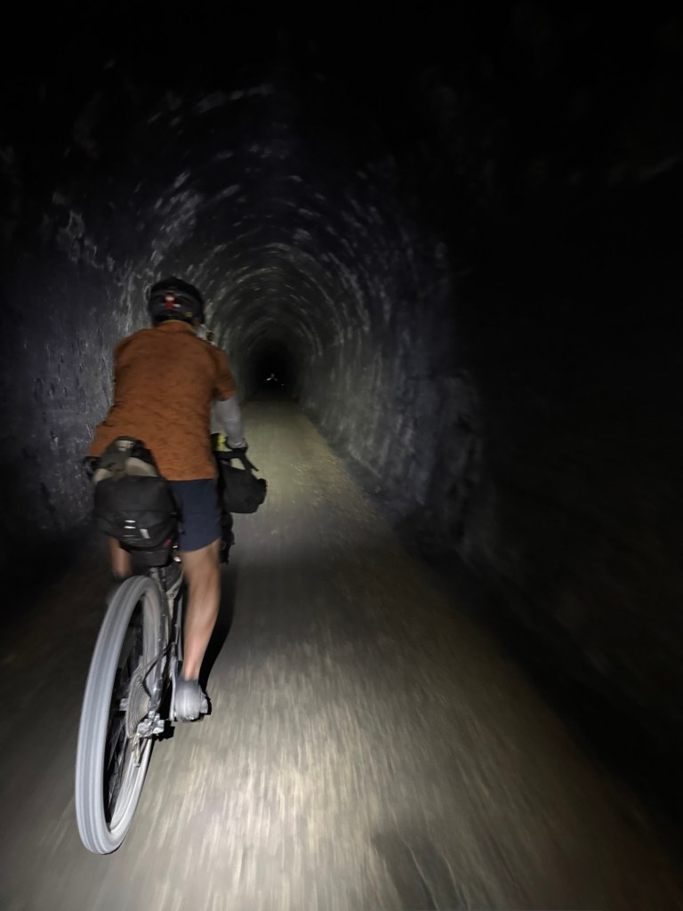There was a little bit of everything as far as riding today but the highlight was the Spooner Tunnel. After a longish gradual climb that was NOTHING like yesterday, we reached the tunnel’s entrance.