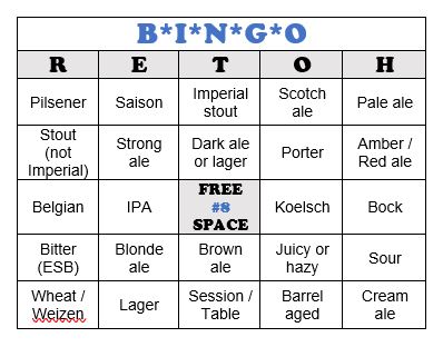 Our beer brewing friends who also happen to be scientists have cooked up something special for the EtOH (which is the chemical compound for alcohol) and created a Bingo game called REtOH, or Ride the Erie to OHio Trail.