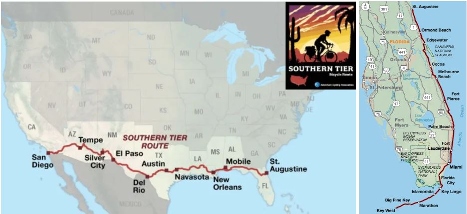 Why not ride our bikes across the southern part of the country instead of going to Florida for two months? We can start in San Diego and when the route ends in St. Augustine, we can turn right and head down the Atlantic coast to Key West. Done and done.