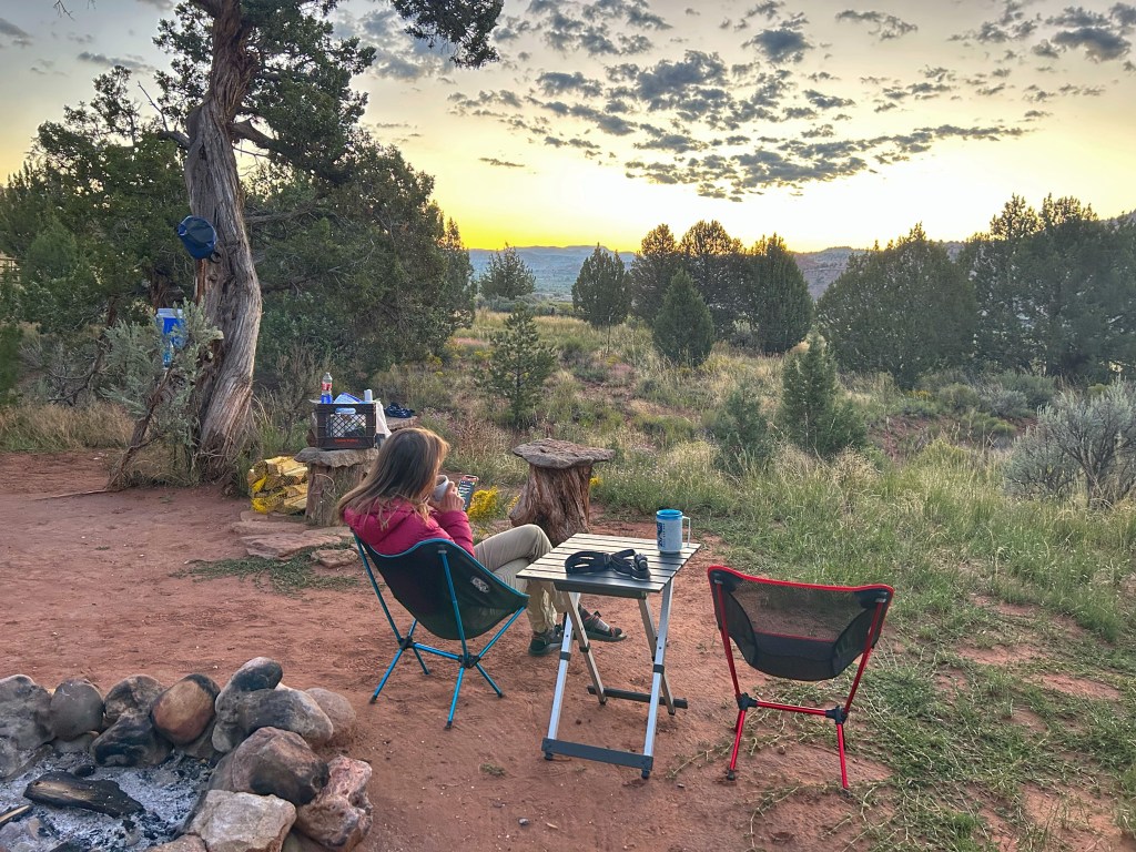 Currently we are camping at a Hipcamp (more on this later) where we get a nightly show of the setting sun when it retires for the day beneath the ridge behind us. The colors on the rocks across from our campsite are remarkable to watch so we position our camp chairs for the evening show.