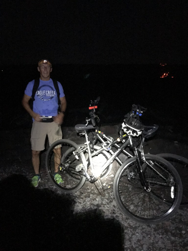 In Anchorage to run a marathon and rode our first and ONLY tandem bike. Tom never coasts. He is always peddling.After running the Kauai Marathon we visited the Big Island. We arose at 3am to ride to an active volcano spewing lava.