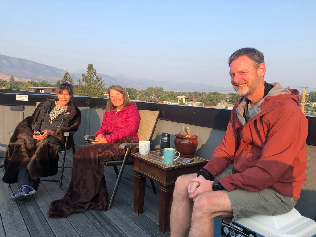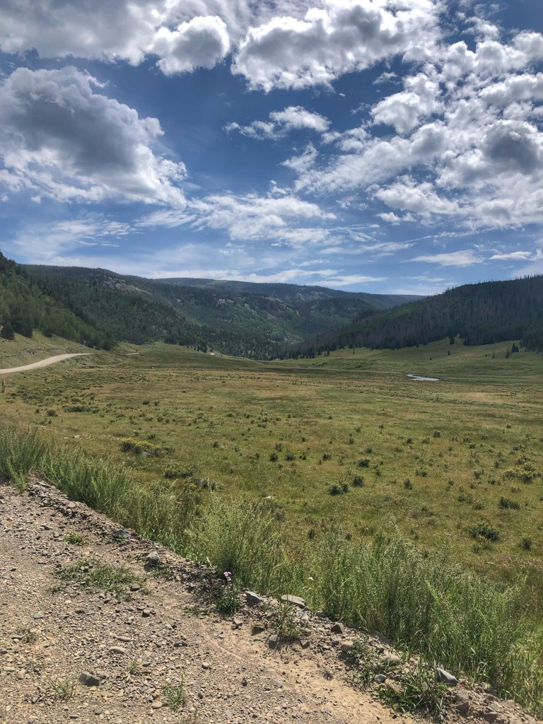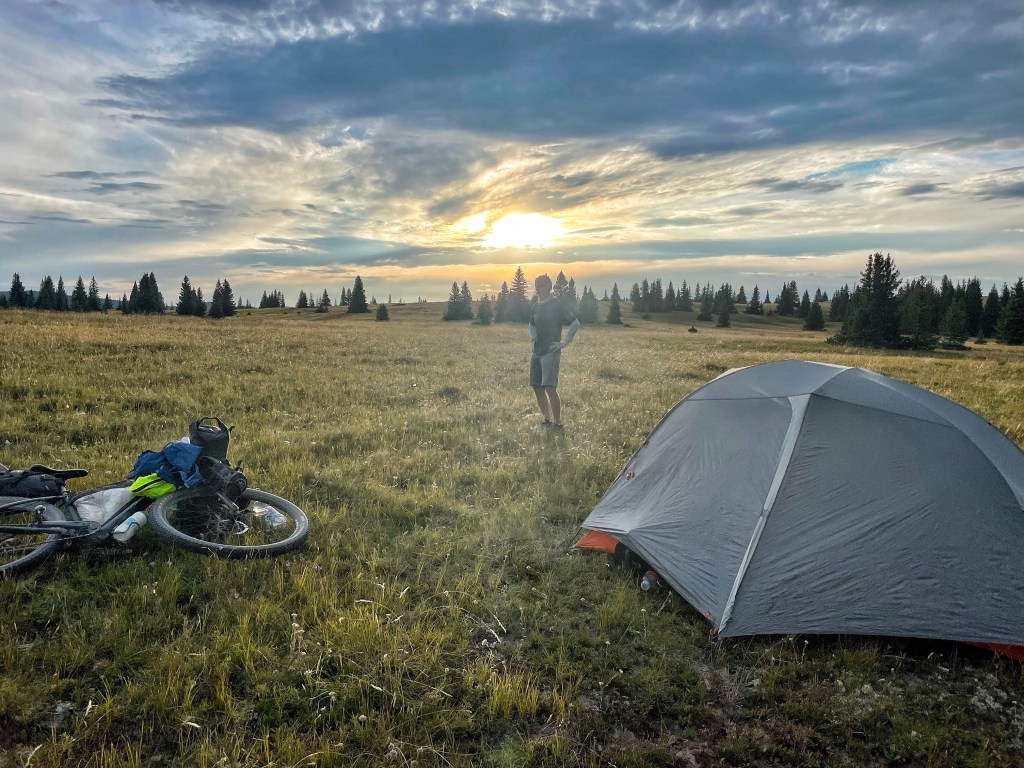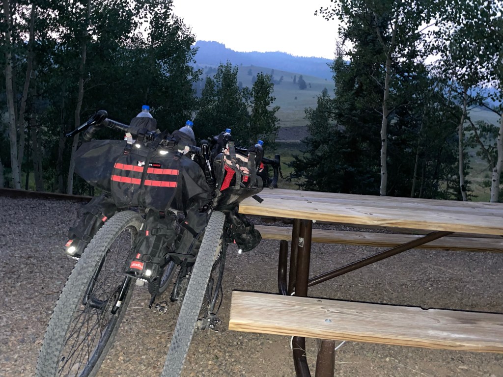Cloudy skies made for a night that was black as coal. Not long after lights out we heard a sound we didn’t recognize. It was if something, an animal, was going to stomp on our tent. And maybe more than one. 😳 We figured elk and soon it (they) bounded off. It’s a heavy sound. They’re big. Then came a few cows. They did their business and then left. With the company gone we finally went to sleep.