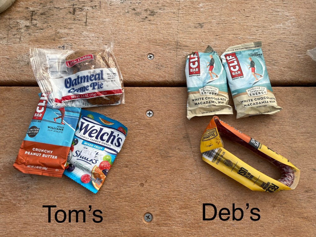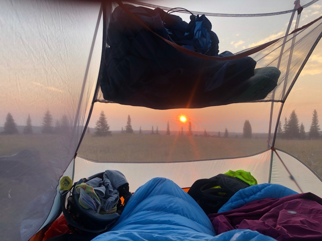 Let’s start with last night. We found a sweet campsite on one of the summits of the day. Dinner eaten, food stowed, teeth brushed and we crawled into the tent. We do our usual, blow up sleeping pad, layout sleeping quilt, route rap, elevation preview and exchange pics routine. Then lights out.