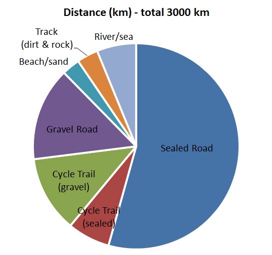 The road surface is a good mix of sealed roads, cycleways, gravel, dirt, single track and some hike-a-bike thrown in to keep it challenging.