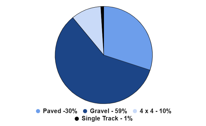 It’s not an exceptionally technical route with only 12,600 feet of elevation and the road surfaces are doable. I’m particularly smiling at the (only) 1% single track after some of New Zealand’s single track scared the bejabbers out of me.